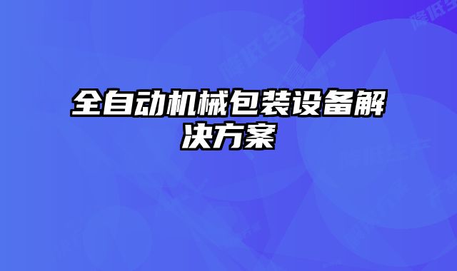 全自動機械包裝設備解決方案