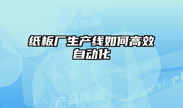 紙板廠生產線槁效自動化:邁向智能制造新時代在競爭激烈的市場環境下,紙板...